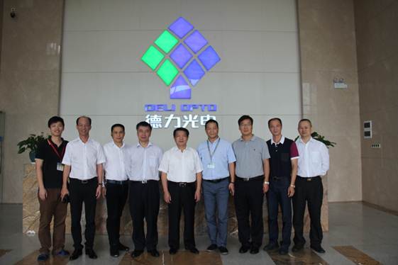 2015年11月20日上午,新余市市府領導一行到德力光電進行調研工作。新余市市府領導一行在德力光電總經理王非陪同下,先后參觀了外延片、芯片生產車間及展廳,王非總經理進行了詳細的講解。最后,新余市市府領導一行與王非總經理在大堂親切合影留念。